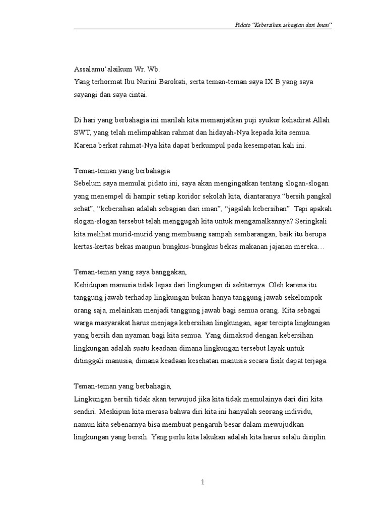 Bismillah ustadz, apakah semboyan kebersihan sebagian dari iman, adal dalilnya ? Beliau telah meletakan pedoman dasar. Contoh slogan kebersihan kebersihan adalah sebagian dari iman lengkapilah separuh imanmu dengan cara menjaga kebersihan. 222) kebersihan itu bersumber dari iman dan merupakan bagian dari iman. So please help us by uploading 1 new document or like us to download